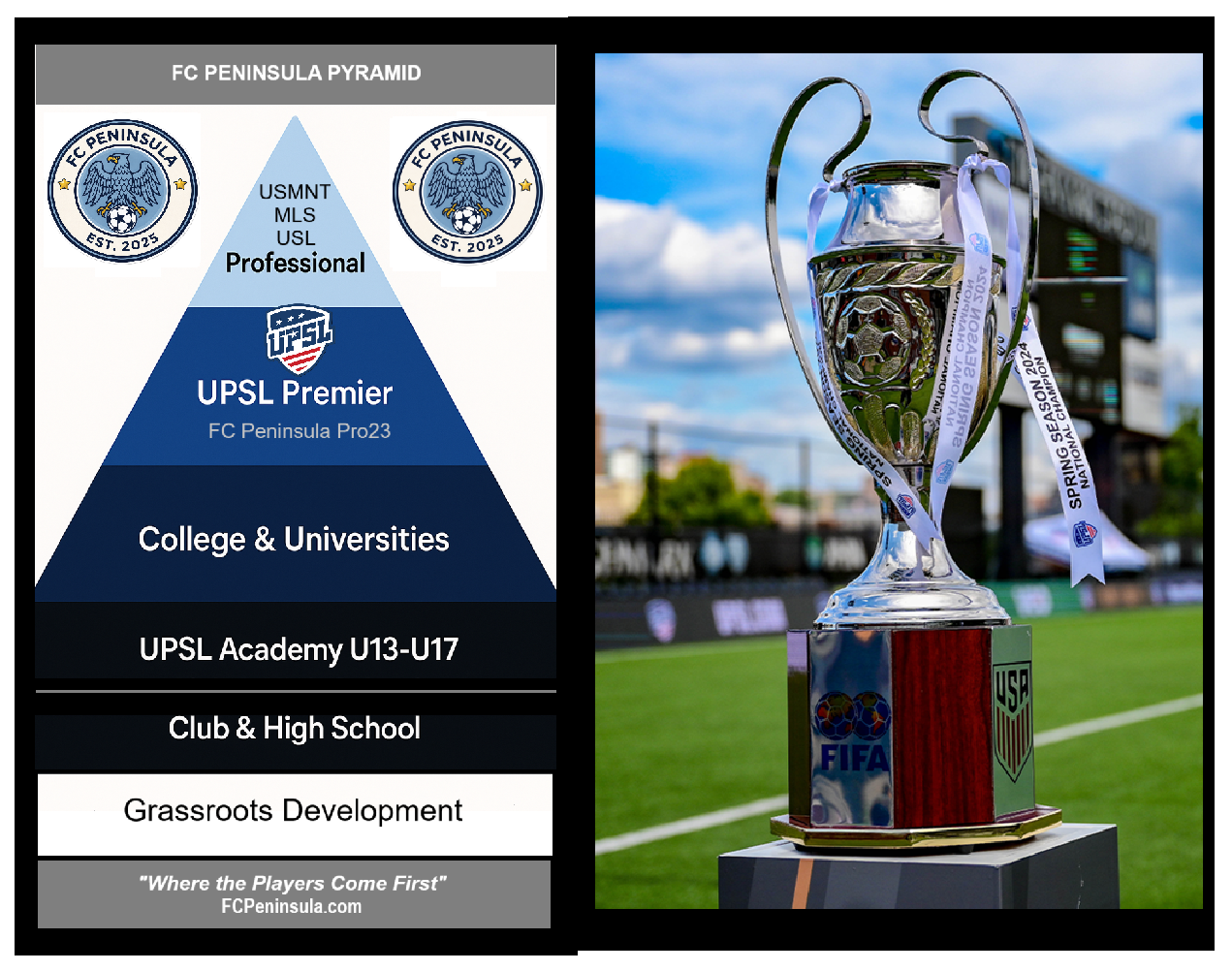 Rush Soccer's UPSL Academy Program competes under the FC Peninsula Pro23 banner and has three developmental phases; UPSL JR Academy (U9 - U12), our Elite UPSL Academy for U13, U15 & U17s with the top post club players having the opportunity to play in the UPSL Premier for the Pro23s. Players invited into this program have displayed the ability to play at a higher level impacting training and matches through an assessment process. This program kicks off in the spring of 2026 for the Academy teams and requires a higher commitment level from both the parents and the players. The FC Peninsula Pro23s will debut in the UPSL Premier fall of 2026.
