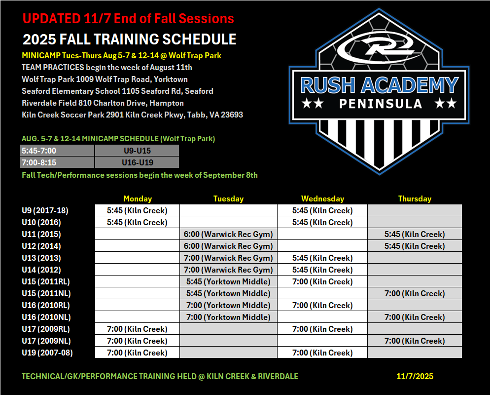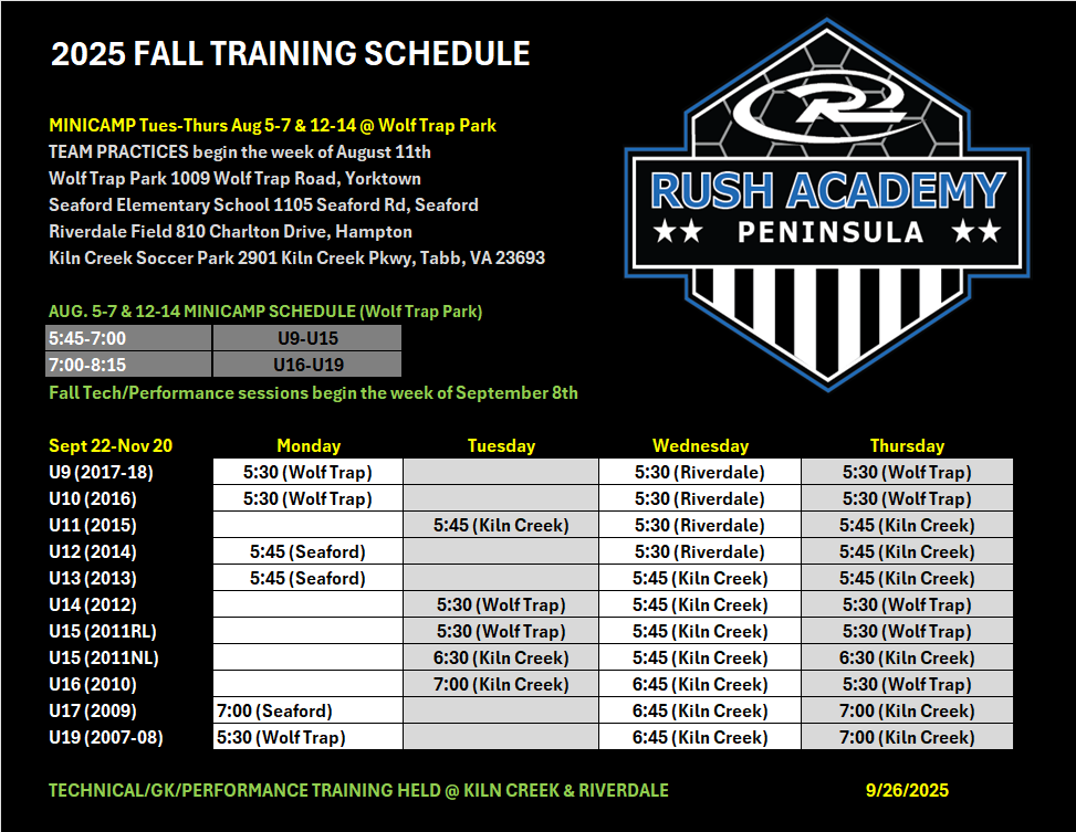2025 FALL PRACTICE SCHEDULES