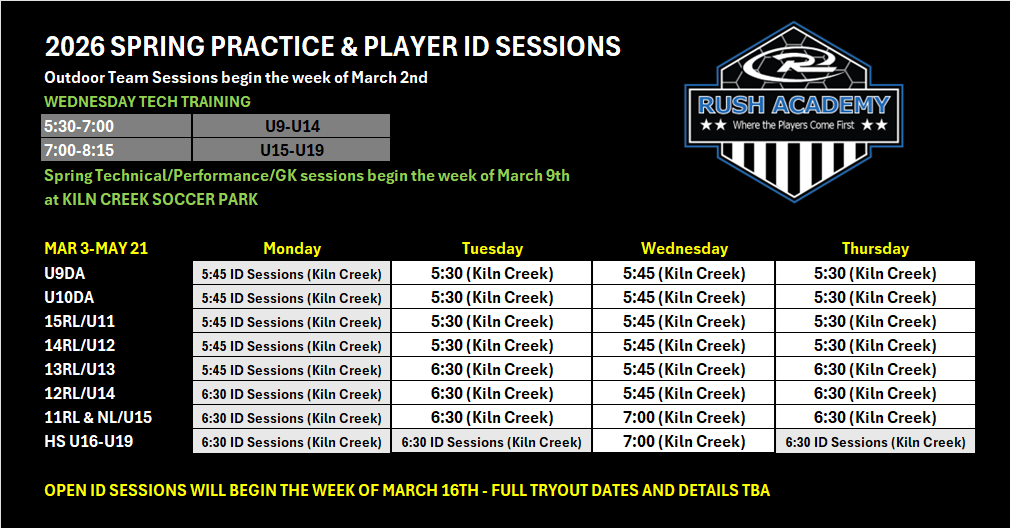 2026 SPRING PRACTICE SCHEDULES