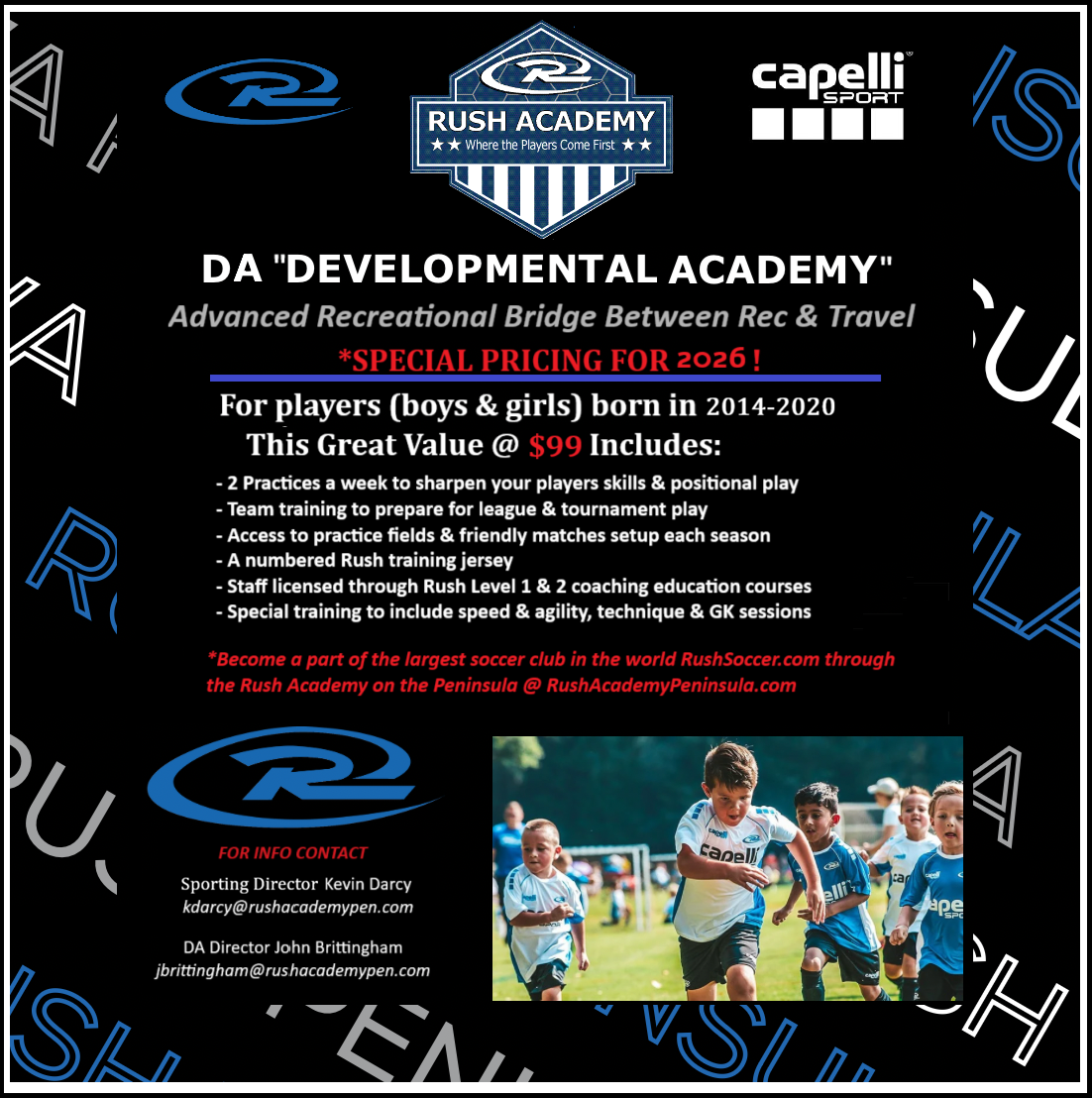 Contact Sporting Director Kevin Darcy with any questions at kdarcy@rushacademypen.com